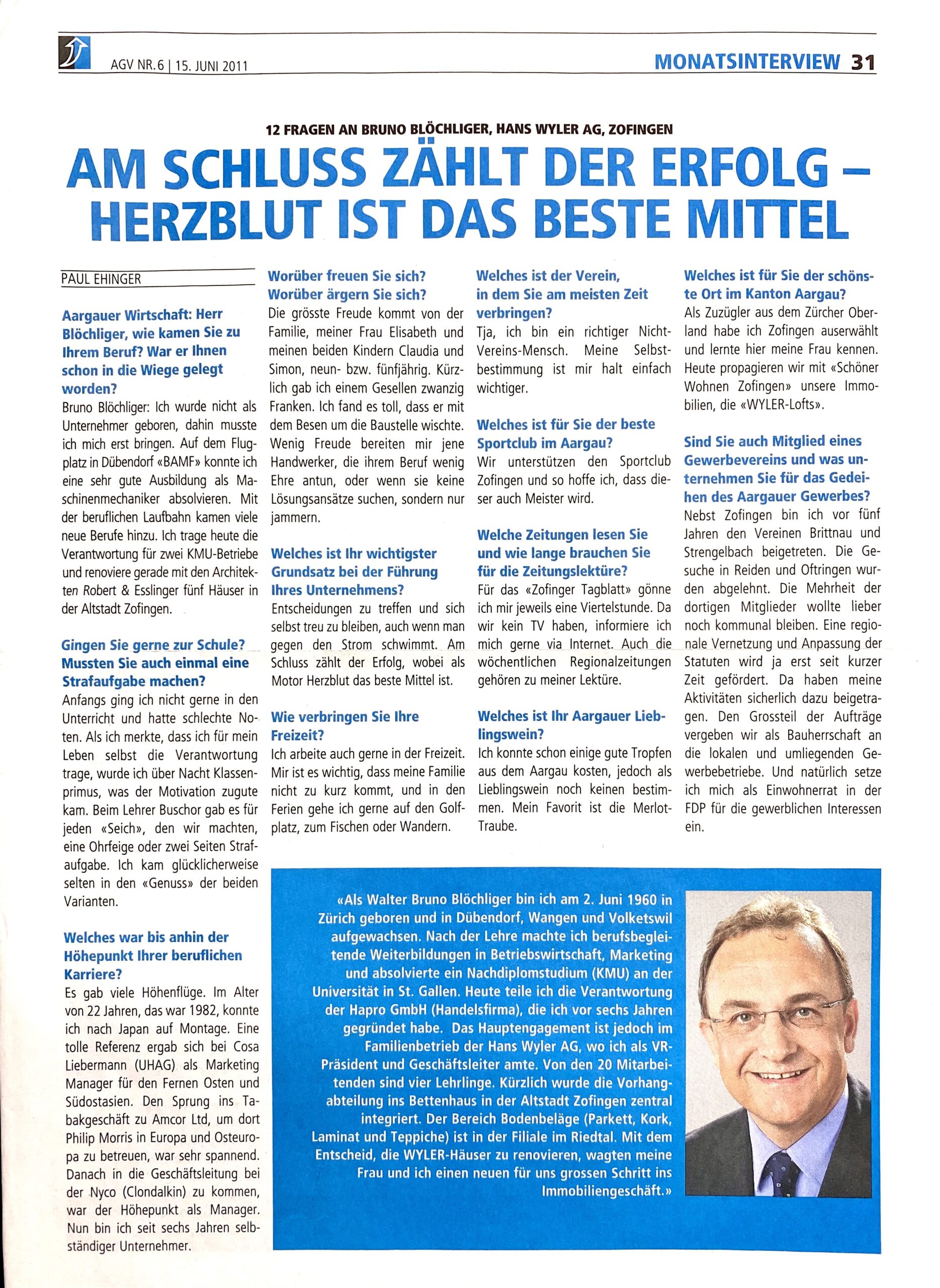 Die Hans Wyler AG beendet mit der Namensänderung zu Wyler Wohnen AG ihre operativen Geschäfte im Bereich Bodenbeläge, Bettwaren und Vorhänge und konzentriert sich auf ihre Immobilien und deren Verwaltung in Zofingen.